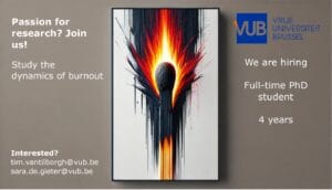 The Vrije Universiteit Brussel (VUB) in Belgium has an open PhD position (4 years) for a research project on the topic of burnout.